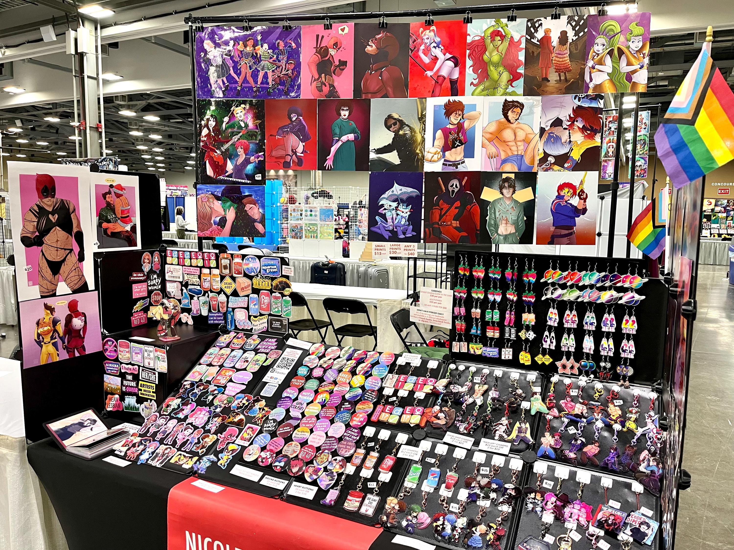 SHOW SET-UP (CLICK TO ENLARGE - 6' corner table, for application purposes)