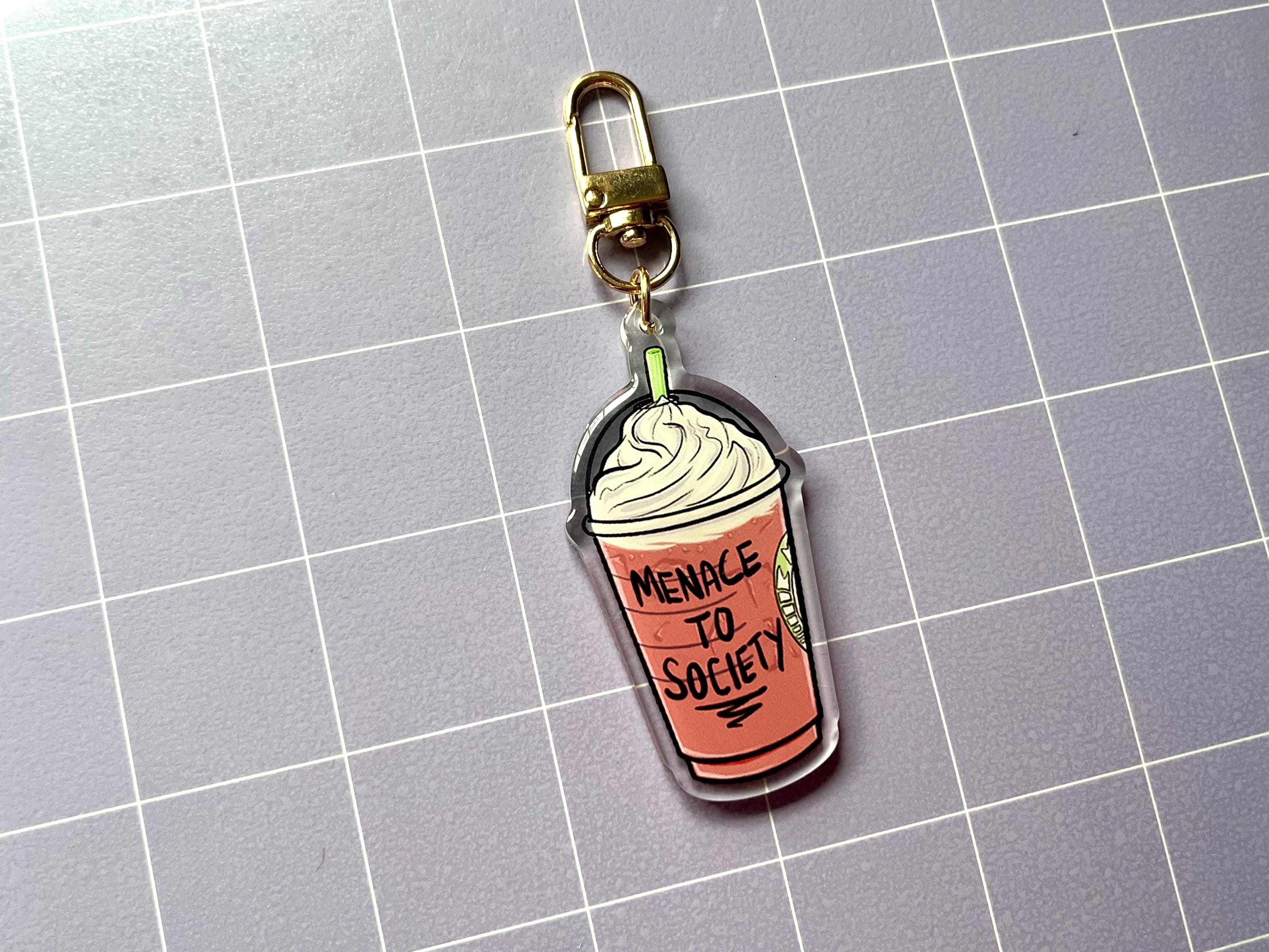 2.5" acrylic charm with a gold-colored keychain clasp attachment. Features a smooth epoxy coating.