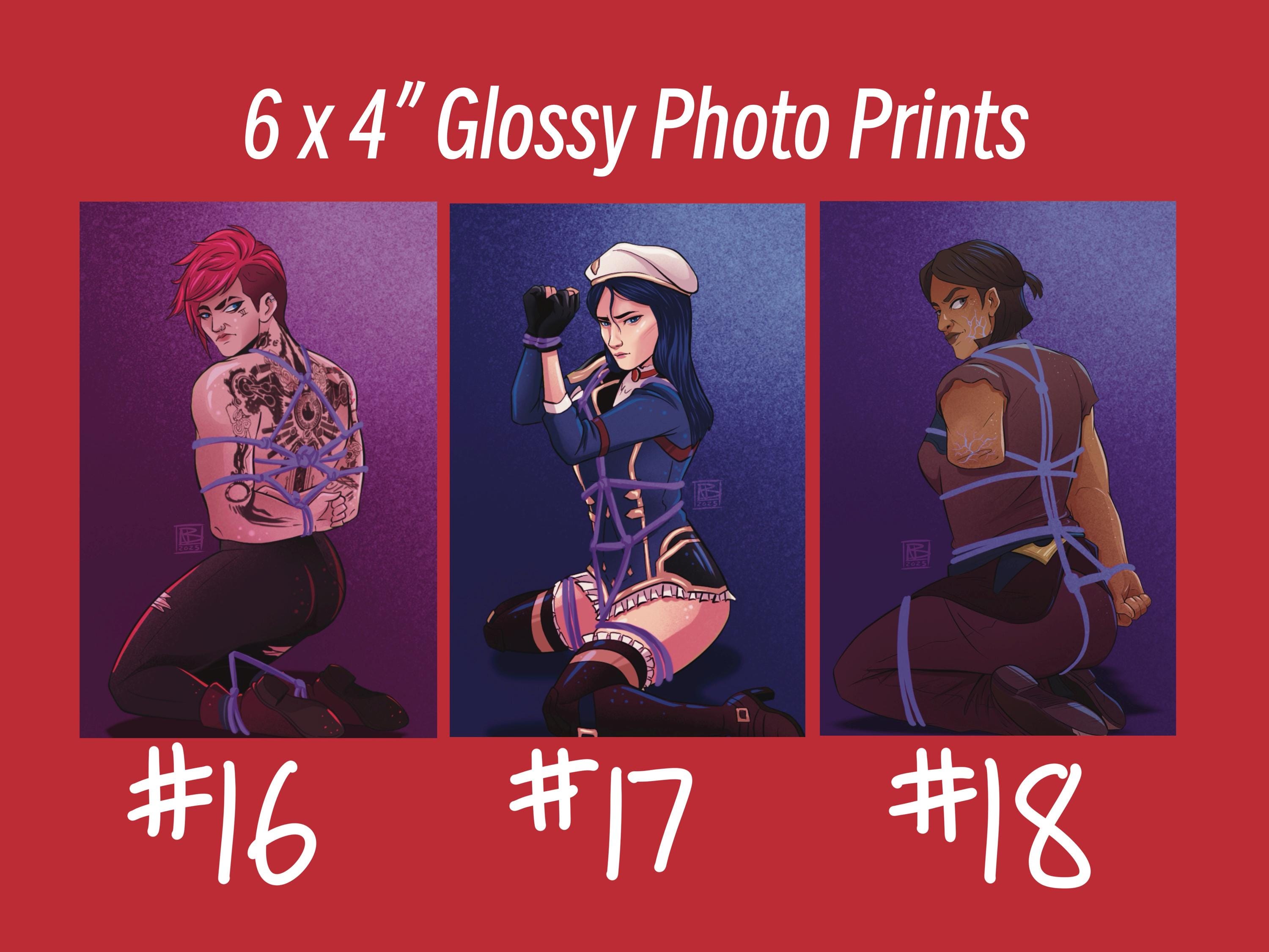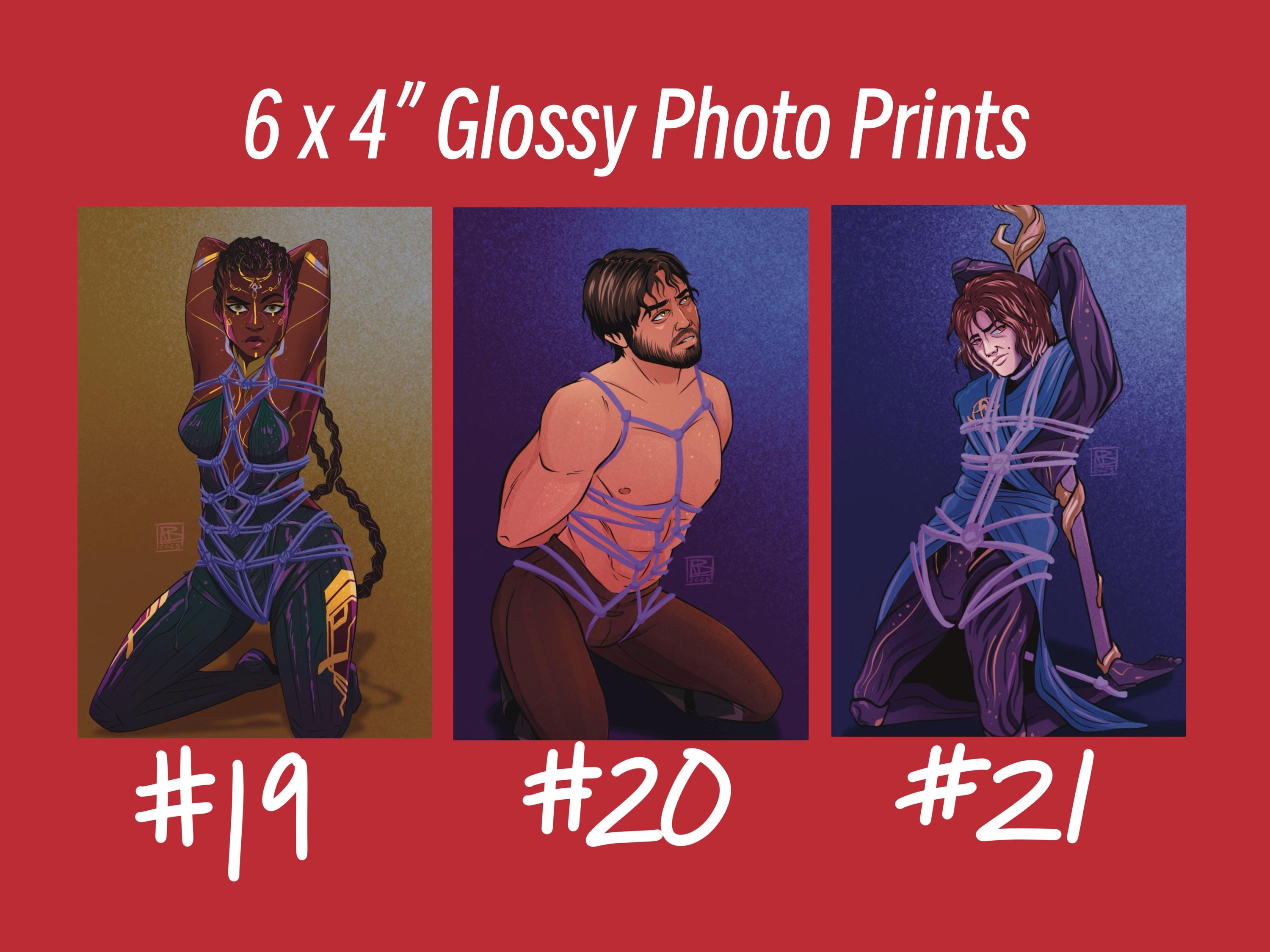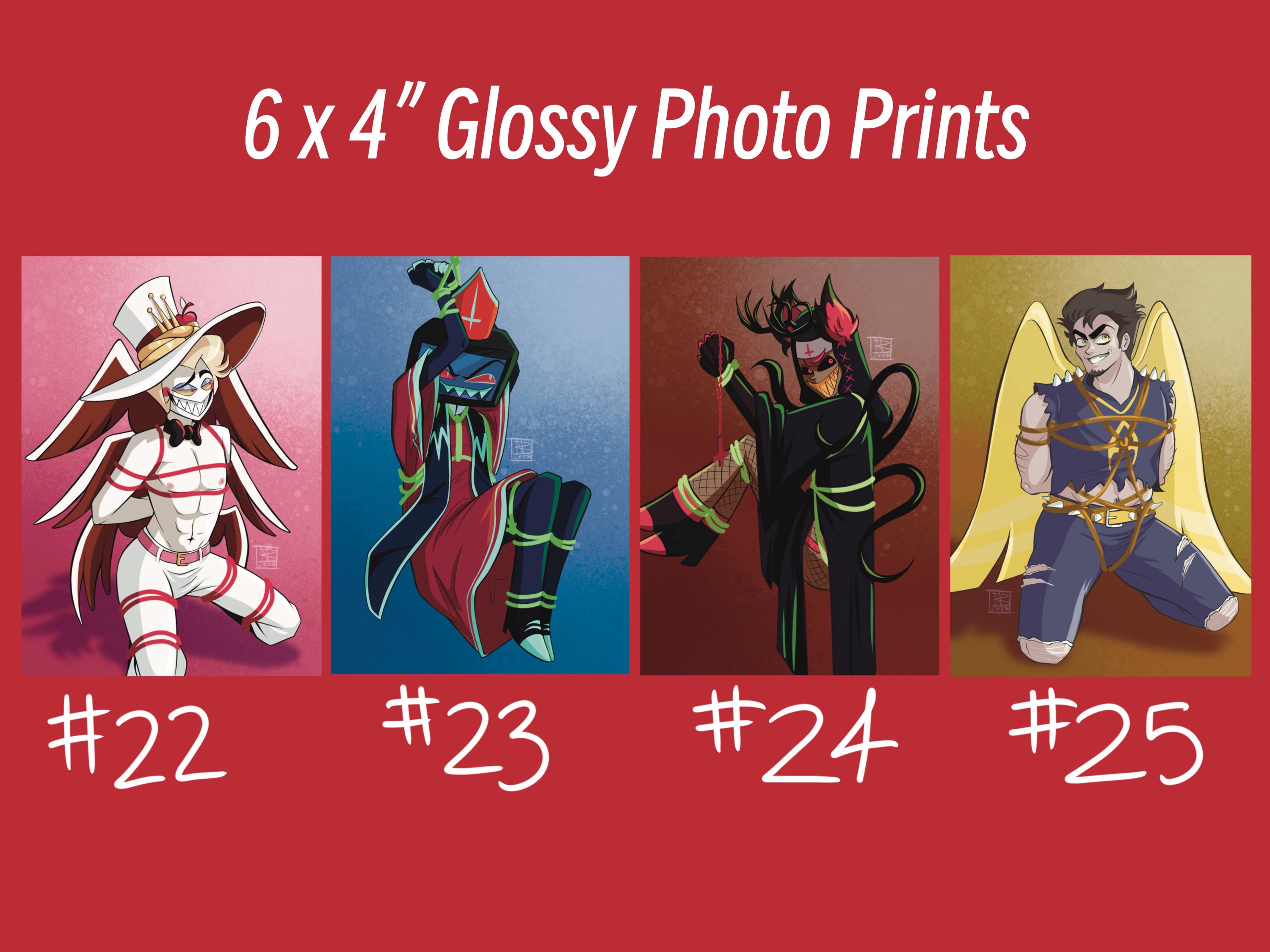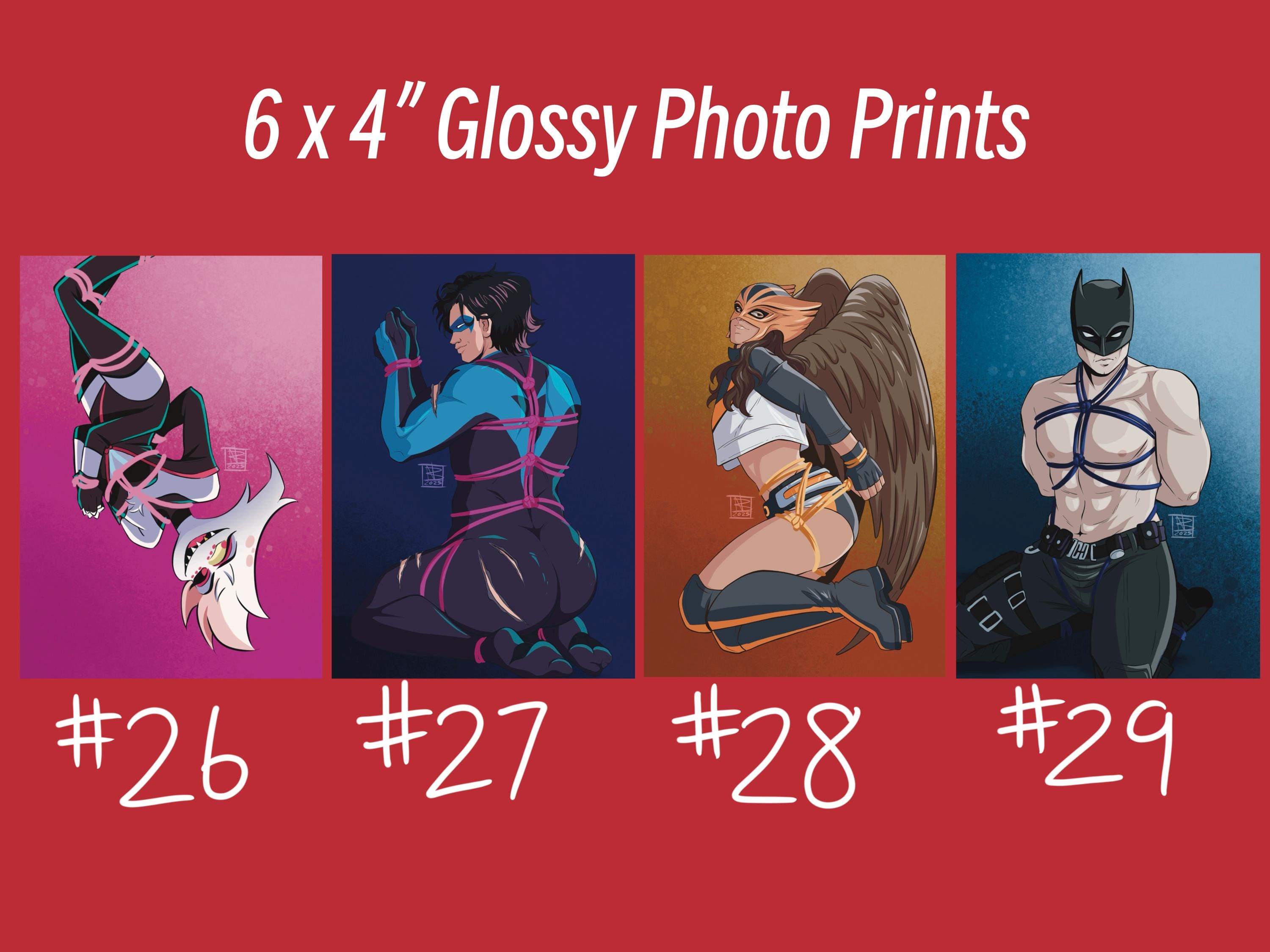 Selection of digital artwork printed on 4x6" glossy photo paper, with a spicy twist! All mini 4x6" glossy prints are printed right in my home studio.