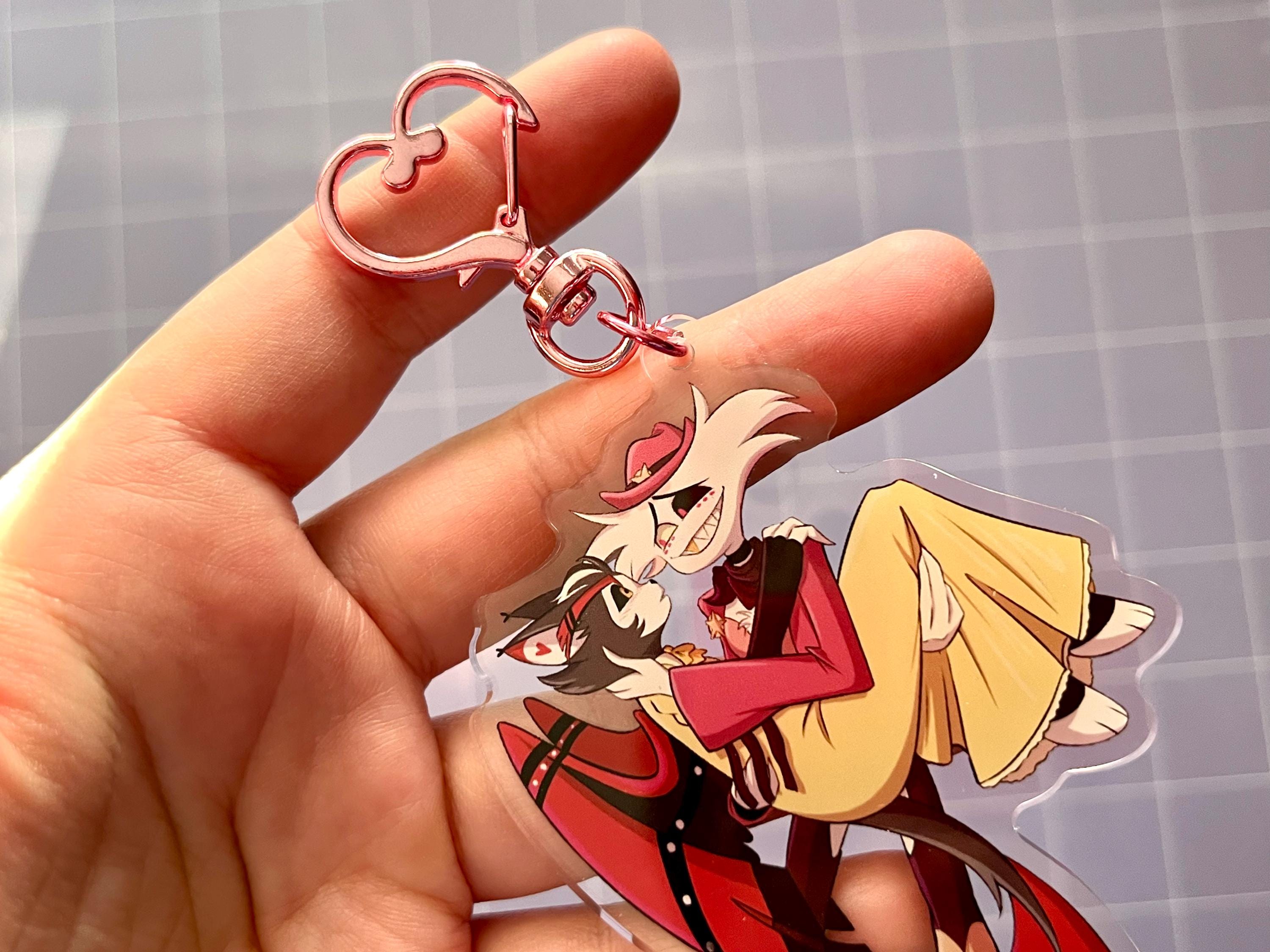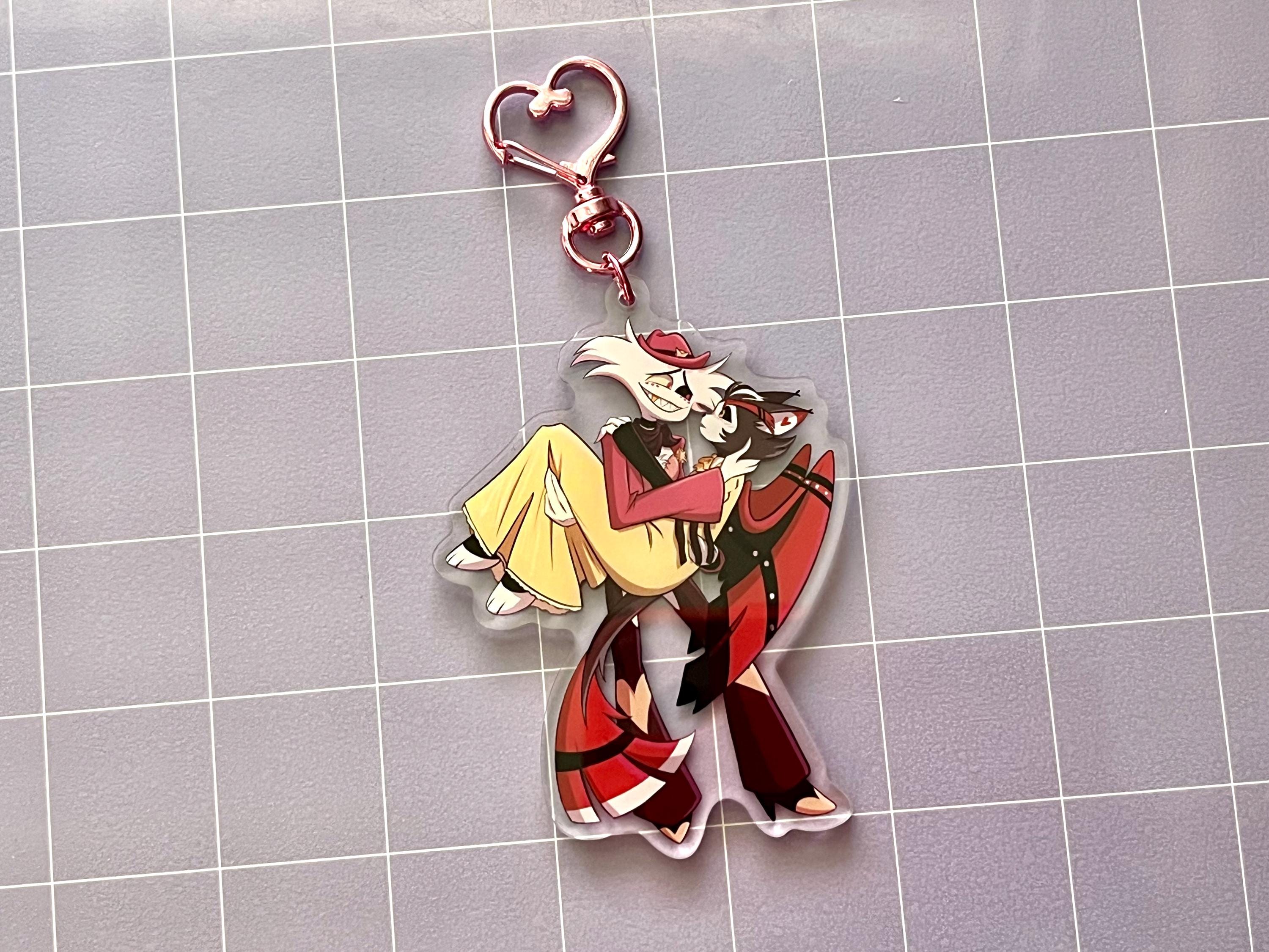 3.5" acrylic charm keychains inspired by your favorite spider and cat duo! Includes a heart-shaped clasp attachment. Artwork is printed on both sides.