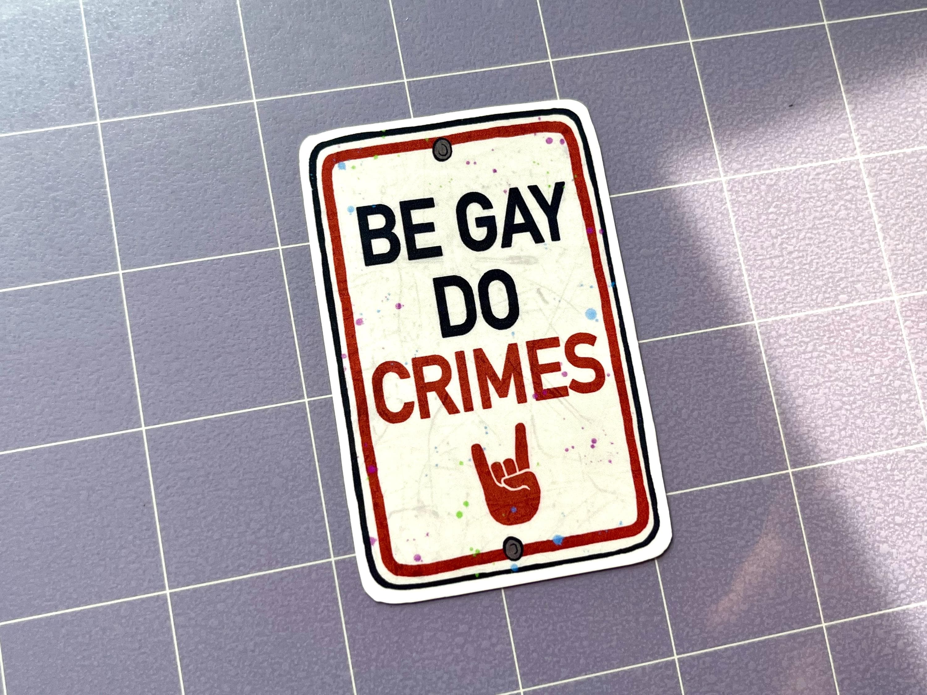 Awesome sticker, I have several "be gay, do crime" stickers and I love this one.